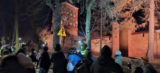 Dzięki współpracy i uprzejmości Gospodarzy Wzgórza Katedralnego we Fromborku przeprowadziliśmy warsztaty w obiekcie "Starej Wozowni", w których udział wzięło 45 osób. Po części wykładowej (o sowach w słowach kilku) udaliśmy się do części parkowej Fromborskich zadrzewień i juz w pierszych minutach spaceru oraz przy użyciu nagrań odgłosów sowich puszczanych z głośnika, odezwały się nasze bohaterki. Usłyszeliśmy a potem zobaczyliśmy w sumie 2 sowy z gatunku puszczyk zwyczajny.