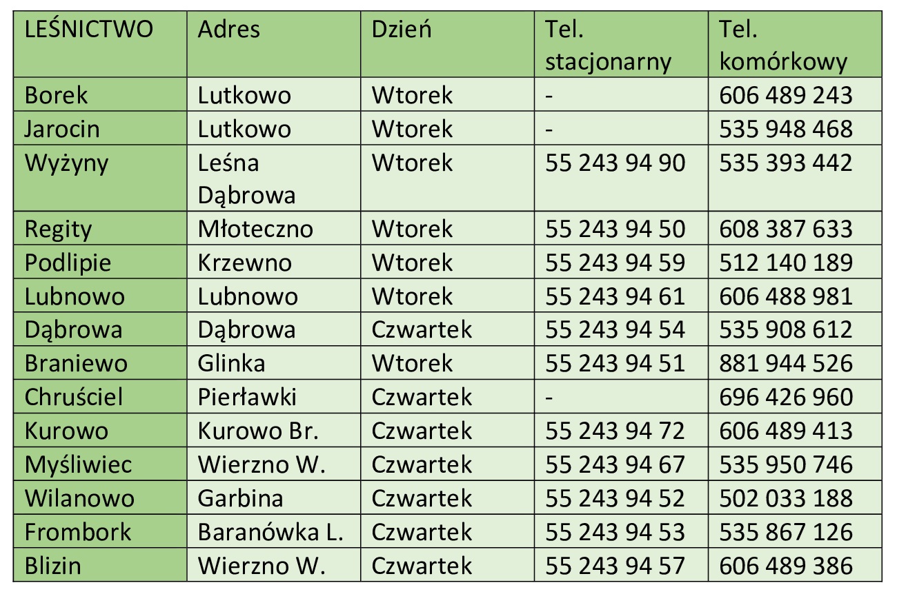 UWAGA: NIE PROWADZI SIĘ SPRZEDAŻY DETALICZNEJ DREWNA, CHOINEK I SADZONEK W SIEDZIBIE NADLEŚNICTWA